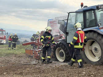 Am Einsatzort angekommen, zeigte sich, dass durch das rasche und überlegte Handeln eines jungen Landwirtes, der sofort mit zwei Handfeuerlöschern eingriff, Schlimmeres verhindert werden konnte.